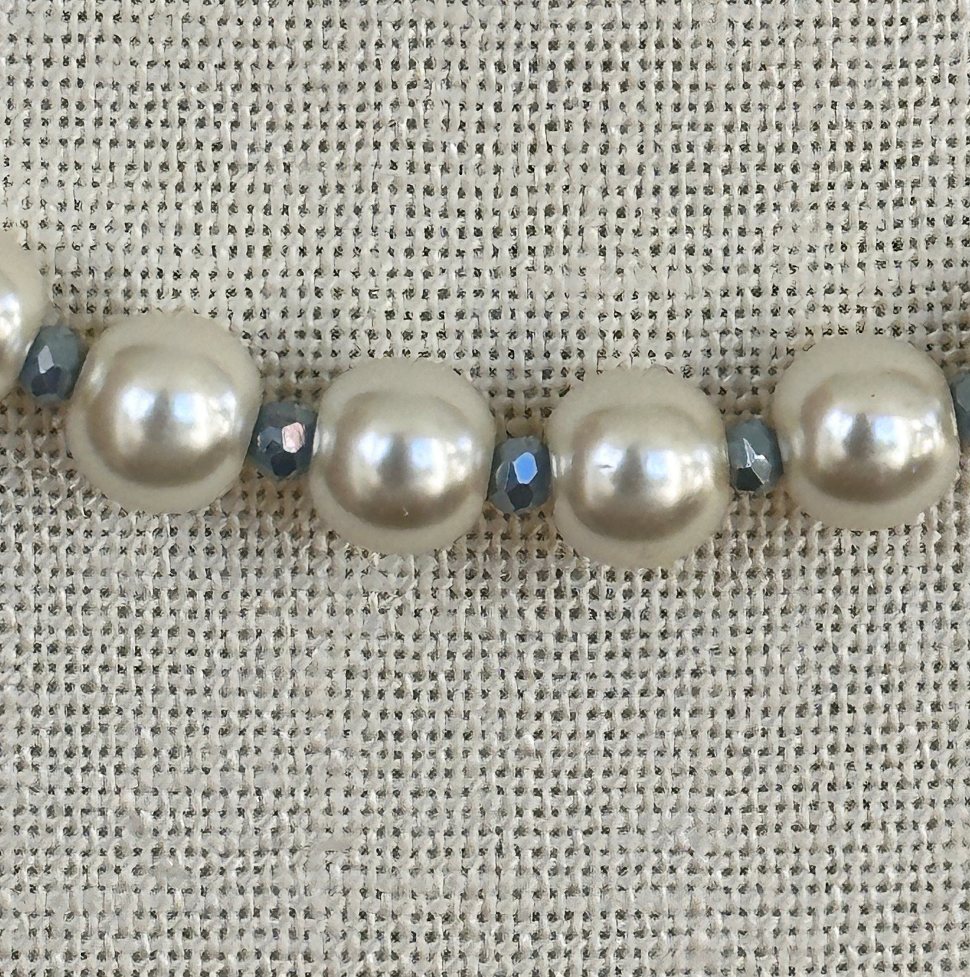 A classic strand of 8mm glass pearls accented with opaque blue crystals for a subtle hint of color and sparkle. Timeless, elegant, and easy to pair with everything—perfect for everyday wear or special occasions.